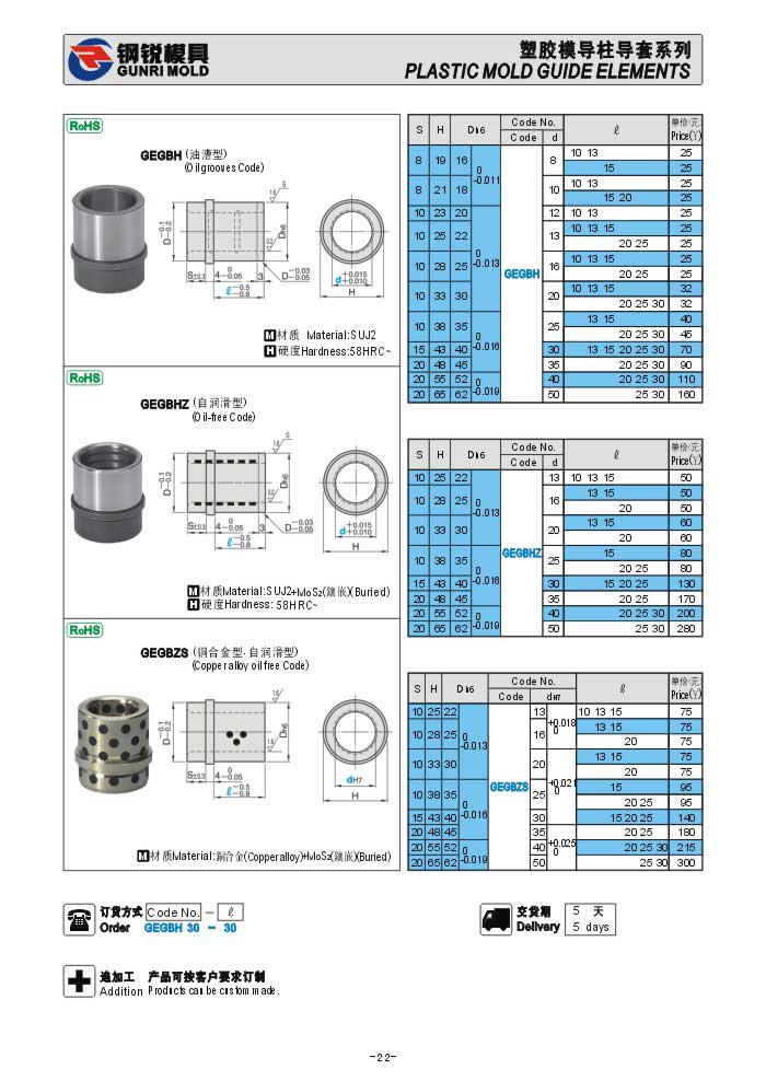 日标塑胶模推板导套GEGBHZ GEGBH GEGBZS GEGBN GEGBNZ GEGBZ