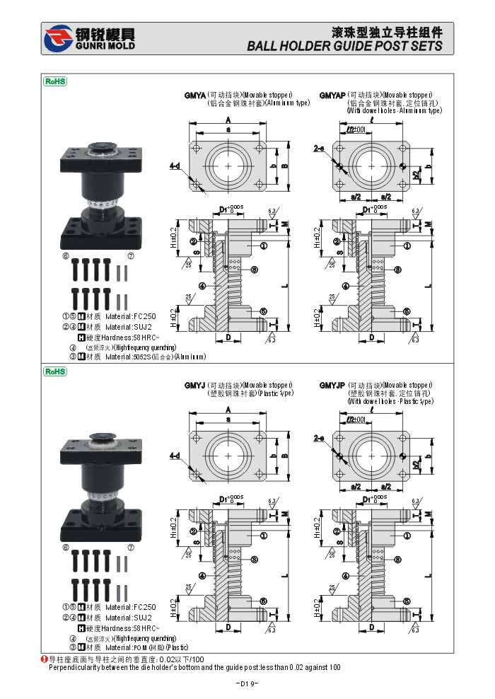 Ball guide Post Sets-Movable Stopper/GMYA GMYAP GMYJ GMYJP